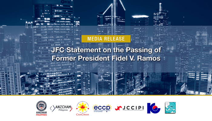 The seven chambers of the Joint Foreign Chambers of the Philippines express their condolences to the family of President Fidel V. Ramos on his passing.
