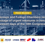 Philippine business groups and foreign chambers called on the House and Senate to pass priority economic reform bills as Congress approaches the remaining session weeks of the 18th Congress.